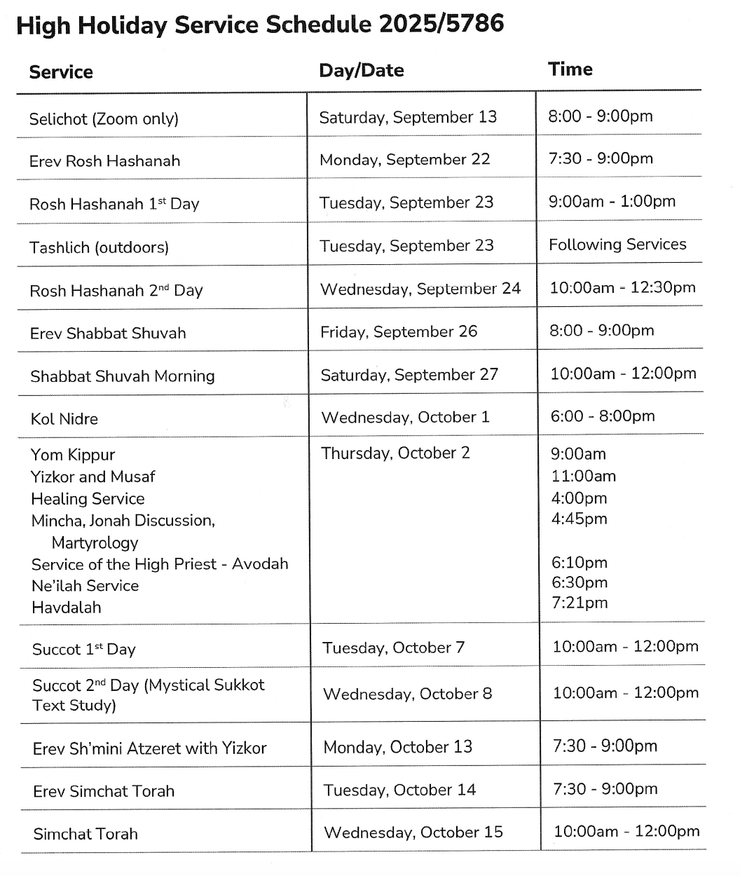 For information on joining THZ for High Holiday services (schedule below), email us or call 609-267-0660.
